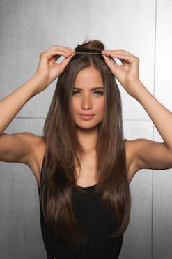 Your favorite halo-style hair extension just got upgraded to 100% human hair! Add 20 inches of length and beautiful volume in just a few easy steps. The cleverly discreet design makes it easy to wear this long, sexy look without the fuss of clipping into your hair. Simply place around your crown and blend through with your own hair. The human hair means it can be styled sleek or curled depending on your mood. Don’t see your colour? Don’t worry, our human hair colour levels are naturally lifted so you can easily deposit any shade.