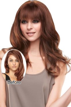EasiFringe Human Hair by Easihair. This 100% human hair clip in fringe piece can be custom cut and heat styled to create any look and blend with any hair texture. With this single accessory, you can instantly add side swept layers to thicken your hairline or slice a blunt edge for a new style without the commitment of a cut. The unique base of the EasiFringe measures 6.5 inches x 3 inches and has a monofilament section at the front which gives you the appearance of your own natural scalp. The hair on the Easifringe measures 7.5 inches at the front and 12 inches overall giving you added volume along with a new fringe. EasiFringe applies easily with 6 pressure sensitive clips and is available in a variety of colours. Whether you wear easiFringe as it comes or custom cut it this is a very versatile piece.