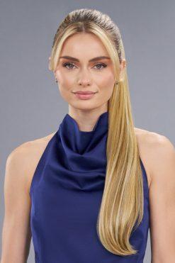 Let your confidence and individuality shine with our Heat Defiant easiPony Long. Boasting an impressive 26 inches in heat resistant synthetic fiber, you can opt for cascading curls, beach waves, or a sleek straight look. Application is simple and takes seconds: Place the comb at the top of your ponytail, wrap the strand around, and secure in place – you’re ready for your night out, special occasion, or daily hair boost.