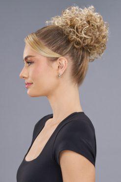 Upgrade your style with easiWrap Curly. This short-length, spiral curl, and beautifully textured bun base boasts a cinch bun attachment for a hassle-free, speedy transformation. Naturally blending in with your natural hair color, it’s the perfect accessory to add curly flair to your look. Plus no need to worry about keeping your curls intact as the synthetic fiber ensures that the easiWrap will hold its style even after washing.
