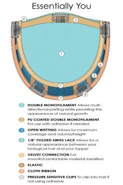Essentially You by Jon Renau is a fantastic synthetic top piece that clips into your existing hair and blends seamlessly into medium length hair. A translucent monofilament base gives you the look of natural hair growth straight from your scalp and allows you to part or style the hair in any direction. Just clip it to your existing hair with the attached pressure sensitive clips that provide a secure fit for added volume and coverage. Perfect piece for the beginning and mid/progressive stages of hair loss.