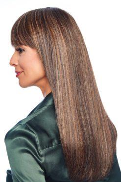 Top Billing 18″ Topper by Raquel Welch. Long tapered lengths blend well into long layered hairstyles. Top Billing 18” is perfect for the woman with longer hair who needs extra coverage and/or volume on top. Depending on your mood, it can be styled with a blunt fringe or worn swept away from the face.