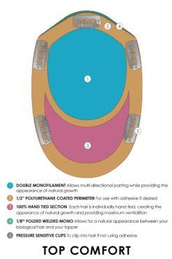 Top Comfort 12″ Human Hair Topper by Jon Renau. Designed with comfort as top priority, Top Comfort is made with a double monofilament top, silky smooth to the touch, and a hand tied back for the most natural movement. Featuring premium Remy Chinese Human Hair, Top Comfort is ideal for those experiencing beginning to mid/progressive hair loss and looking for more coverage in the top and crown area.