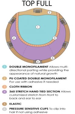 Top Full 18″ Synthetic Topper by Jon Renau An elegant 18-inch topper that adds length and volume over the entire crown. Designed with the comfort of a 100% hand tied stretch base, this hair piece is worn over the entire crown and provides the most coverage of any clip in topper. The hand tied double monofilament top provides multi-directional styling and gives the illusion of natural hair growth. The extra layer of monofilament makes it smooth, soft and comfortable on the scalp.